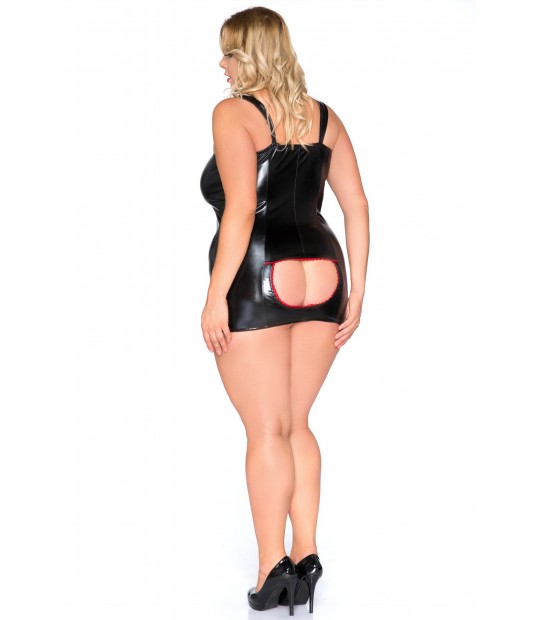 Erotyczna koszulka z materiału wet look z wycięciem na piersiach i pośladkach